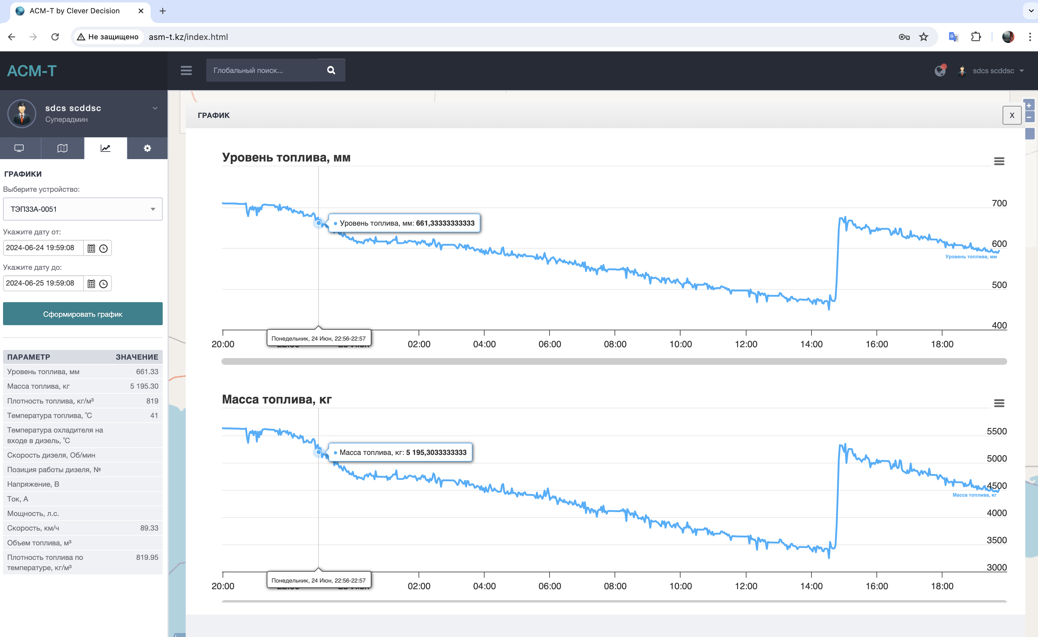 ASM-T is an innovative system designed to control and monitor fuel and electricity consumption, monitor locomotives and automate reporting. The system provides visualization of objects and online dashboards, which contributes to significant savings for the company.